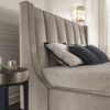 Crafted with a sturdy wood structure and covered in double-density polyurethane foam, the Kubrick bed offers a firm and comfortable feel that is perfect for a restful night’s sleep. The high headboard, tufted with elegant detailing, adds a touch of glamour to any bedroom, making it a standout piece in your home.