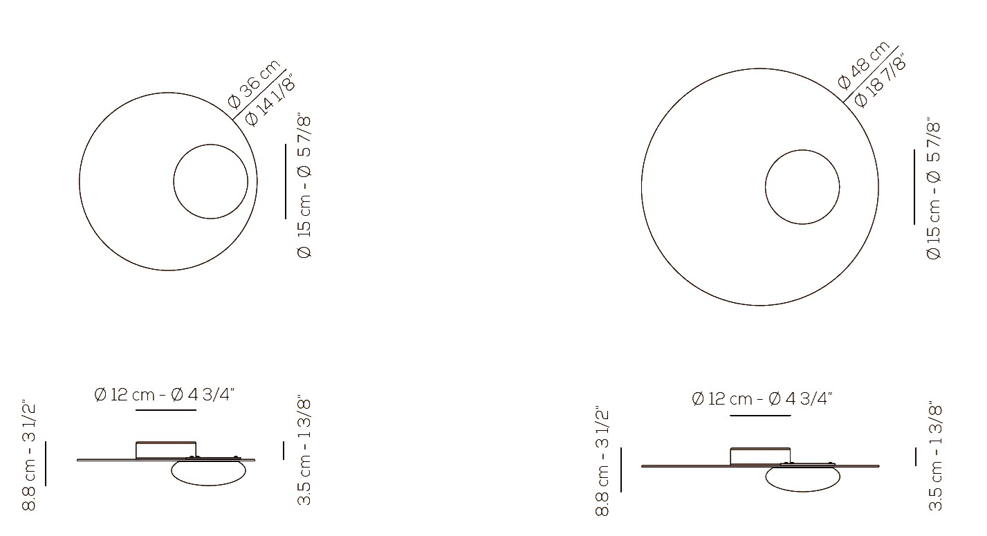 The semi-spherical blown glass diffuser creates a soft and inviting glow, while the circular aluminum disk adds a contemporary edge. Whether you choose the floor lamp, suspension, ceiling, or wall lamp, the Kwic family of lamps offers versatility and style. The decentralized position of the diffuser and disk gives these lamps a unique and eye-catching look.