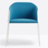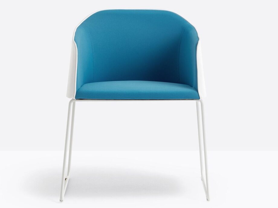 Available in a range of fabric or leather options, the Laja 881 armchair allows you to customize your look with monochromatic or two-tone finishes to complement your decor. The sled legs in steel bar add a touch of sophistication to the design, creating a striking visual impact in any room.
