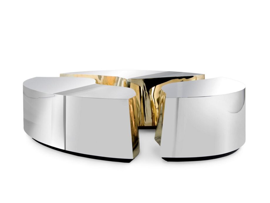 The Lapiaz Oval is more than just a coffee table, it is an expression of luxury and comfort. Its oval shape and modern style are designed to provide not just functionality, but also elegance and sophistication. The table’s golden, metallic tones are sure to add a luxe appeal to your space, while its unique design creates a stunning visual effect, definitely a conversation starter for your guests.
