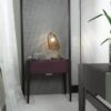 Adding to the table’s appeal is its luxurious marble top in Red Lepanto, a stand-out detail that underscores the overall design. The table is also adorned with a light bronzed matt brass handle and end feet, enhancing its modern aesthetic while providing a nice contrast with the urban black Ash wood.