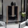 The Lexington Avenue Bar Cabinet is crafted from the finest woods, polished to a glossy black lacquer that is sure to captivate. The stunning polychrome inlaid woods lend an artistic touch to this modern piece, making it a standout addition to your home. The cabinet’s legs, carved from solid Canaletto walnut, promise durability and longevity, making it a timeless piece that transcends fleeting trends.