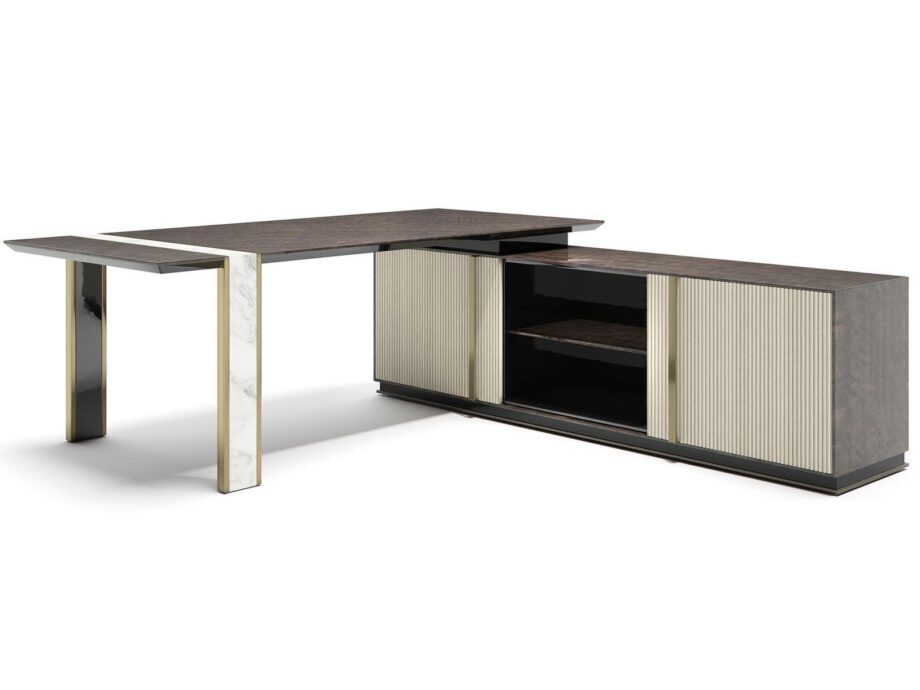 The LINCOLN XL desk is not just a desk; it’s a statement piece. With drawers and a service cabinet, this desk offers ample storage space to keep your workspace organized and clutter-free. The marble insert adds a touch of opulence, elevating the overall look of the desk. The addition of shelves provides extra storage for your office essentials, making it both functional and stylish.