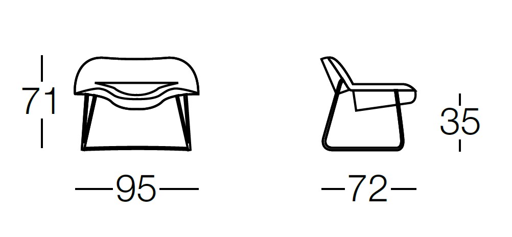The Lips easy chair stands on a sleek satin stainless steel sled base, complete with non-slip elements made from thermoplastic materials. These elements ensure stability and durability, allowing you to enjoy your chair for years to come.