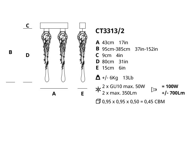 Perfect for contemporary interiors seeking a statement piece, the Liquid Ct3313/2 is ideal for vertical display, creating a striking visual impact. Whether used in a living room, dining area, or entryway, this pendant lamp will add a touch of glamour and style to any space.