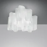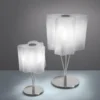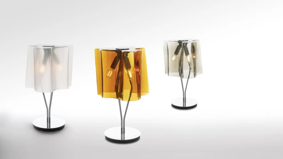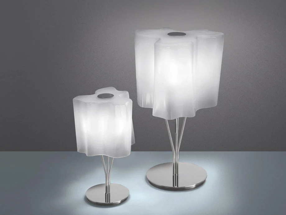 The Logico table lamp features a sleek Chromed zinc-alloy base and chrome-plated steel structure, paired with a blown glass diffuser that boasts a polished-silk finish. The unique three-layer blown glass design (crystal + silk + crystal) is expertly crafted in an inverted mold to ensure structural consistency and durability.