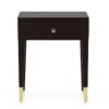 Elevate your bedroom with the modern sophistication of the Look 0cd4005 Italian bedside table from the Ellipse collection by designer Matteo De Stefani. Crafted in Italy from luxurious wood, this sleek rectangular nightstand features a single drawer for convenient storage. The minimalist design of the Look 0cd4005 is accented with gold-plated metal inserts, adding a touch of elegance to any bedroom decor.