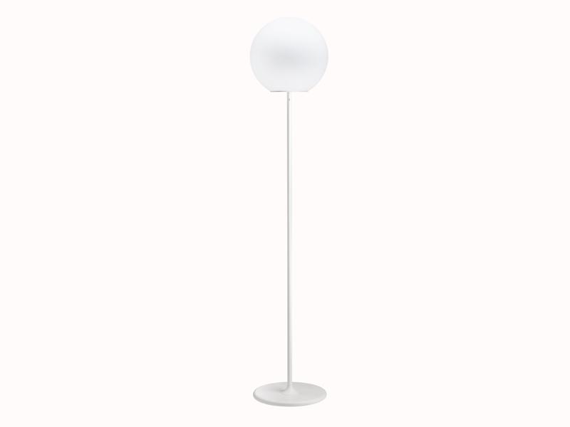 Each lamp in the Lumi Sfera collection features a white satin-finish blown glass diffuser and a sturdy load-bearing structure in white painted metal or polyester reinforced with glass fiber. Suitable for indoor use, these lamps can be powered by halogen, fluorescent, or LED bulbs.