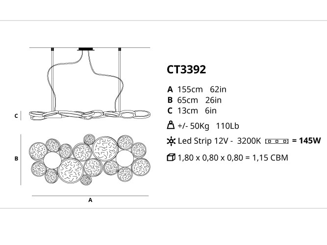 Transform your space with the Luna Ct3392 pendant lamp and experience the magic of the full moon in your own home. Contact us today to inquire about pricing and bring this stunning piece into your life. Make a statement with the Luna Ct3392 pendant lamp and let its enchanting glow light up your world.