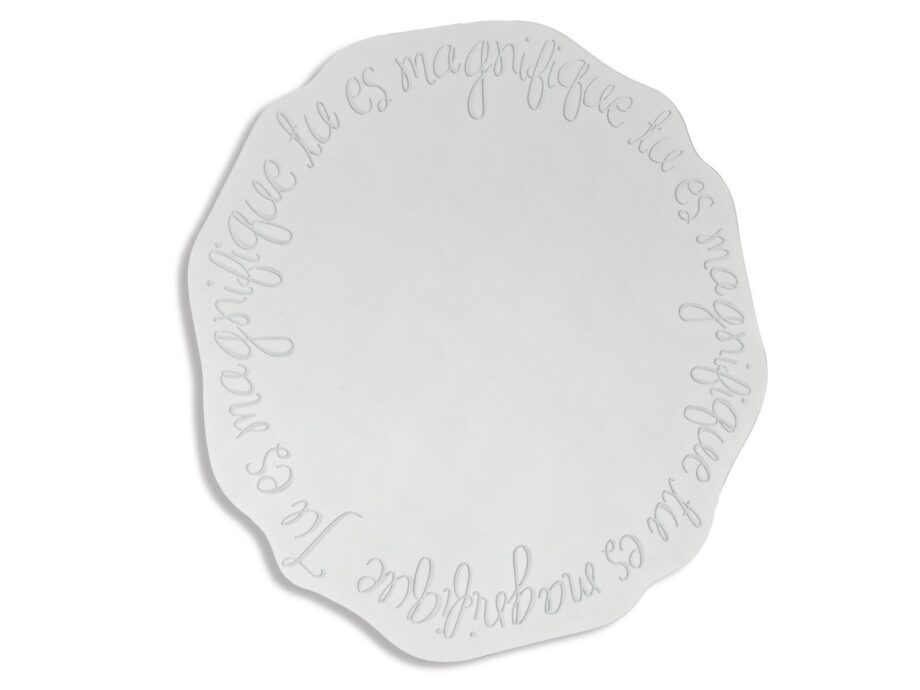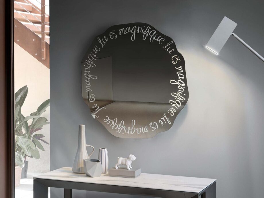 Crafted with a thickness of 5mm, this wall-mounted mirror features a striking one shading screen print that reads ‘Tu es magnifique,’ a reminder of your inherent beauty every time you gaze into its reflective surface. The round shape of the mirror adds a touch of elegance and sophistication to any room, making it a statement piece that effortlessly enhances the aesthetics of your home.