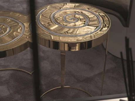 Elevate your living space with the exquisite Manfred coffee table from Longhi’s Loveluxe 2013 – nobles collection, designed by the renowned Giuseppe Iasparra. This stunning piece combines contemporary flair with Art Deco influences, featuring a low metal base adorned with a captivating curved Sequence decoration.