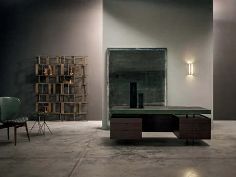 Introducing Marmaduke, a sophisticated and elegant addition to your interior design collection. Designed by the renowned Roberto Lazzeroni, this modern writing desk exudes Italian craftsmanship and style. Crafted with the finest materials, including tanned leather and wood, Marmaduke is a testament to quality and luxury.