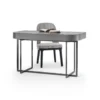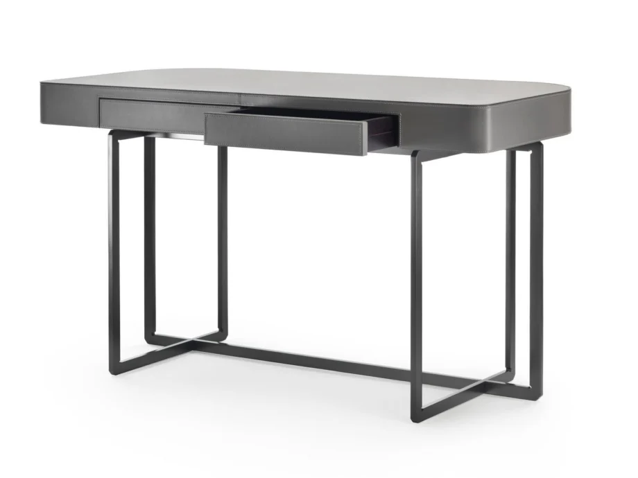 The combination of metal, leather, and wood creates a harmonious and visually striking piece that is sure to be a focal point in any room. With its clean lines and refined design, Marmaduke is both functional and beautiful. The subtle details, such as the graphic touch on the legs, add a unique flair to this desk.