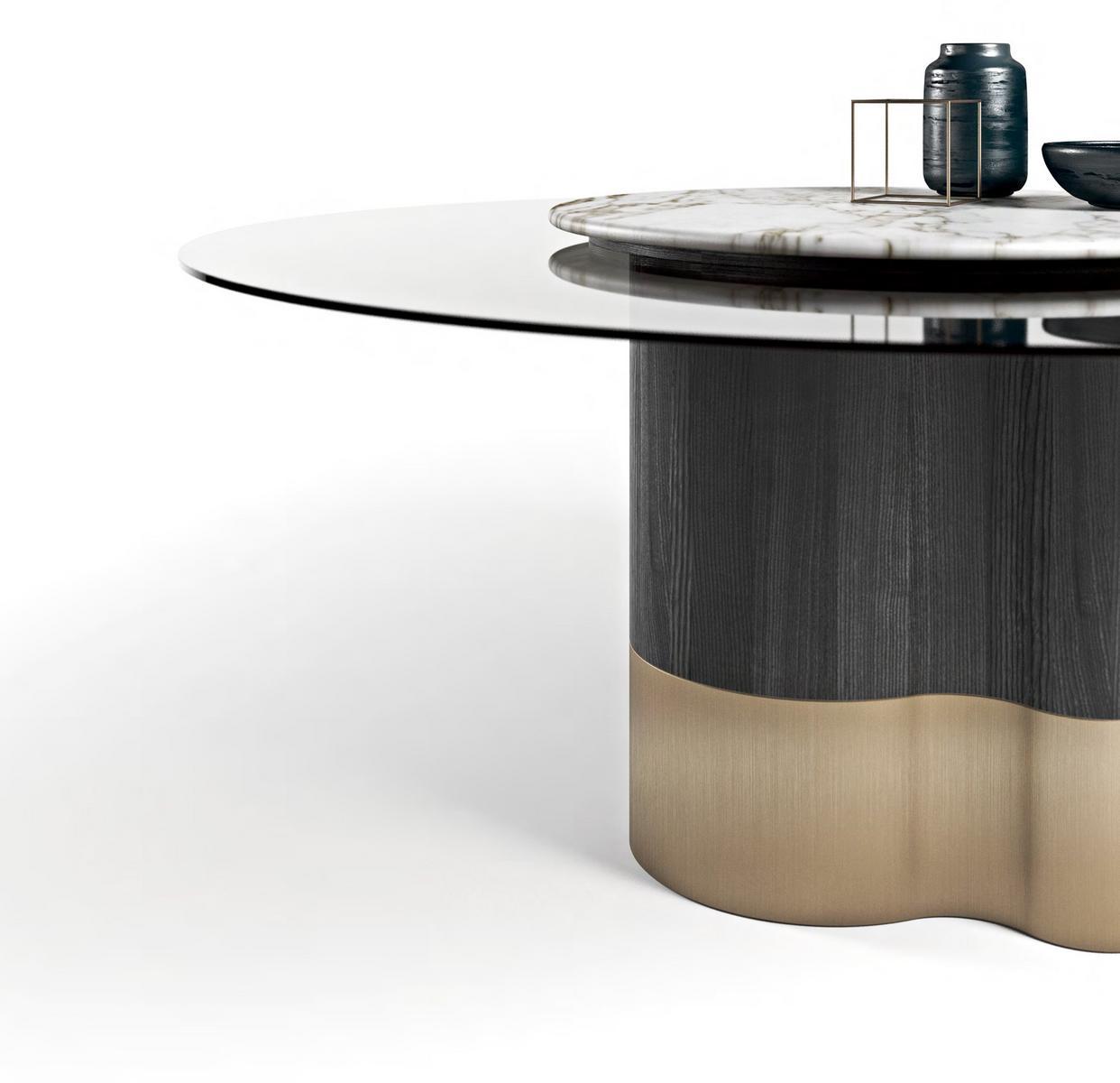 The Marygold table comes with a unique extra feature – a Lazy Susan made of marble, available in Carrara or Nero Marquinia options, providing added convenience and functionality. This innovative design element enhances the overall aesthetic appeal of the table while offering practicality for serving and sharing meals.