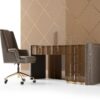 Elevate your workspace with the exquisite Mason desk from the Luigi Volpi collection. This modern masterpiece showcases Italian craftsmanship at its finest, crafted from high-quality wood for a sleek and sophisticated look. The desk features luxurious leather upholstery on the curved side panels, adding a touch of elegance to your office or study.