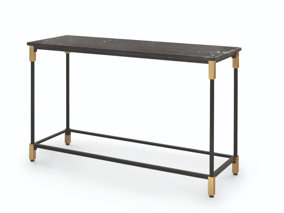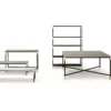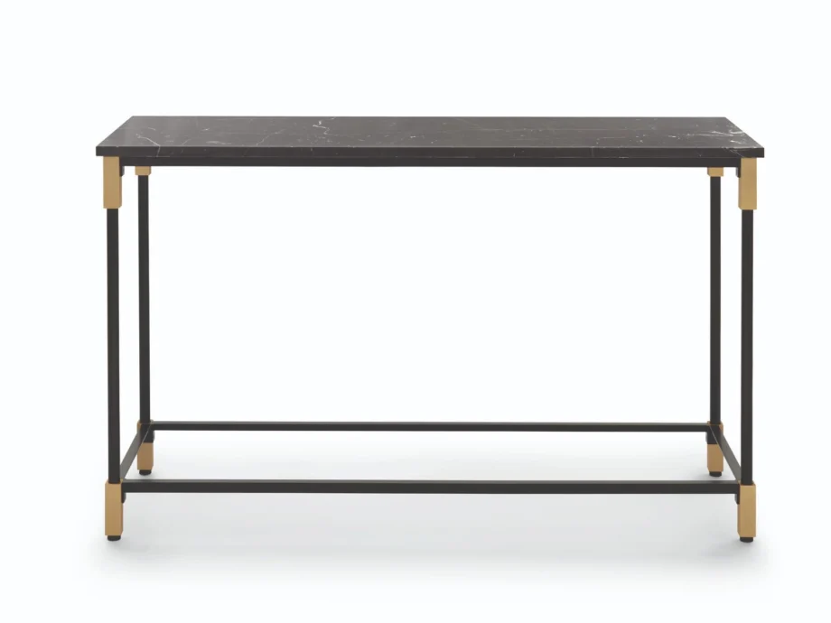 The shelves of the bookcases are made from rich chocolate wood, while the tops of the small tables, console, and table are available in luxurious marble. The tubular frame of the console is finished in a sleek black matte paint, adding a modern touch to the overall design. Whether you use it as a statement piece in your entryway or to display your favorite decor items in the living room, the Match console is sure to impress.
