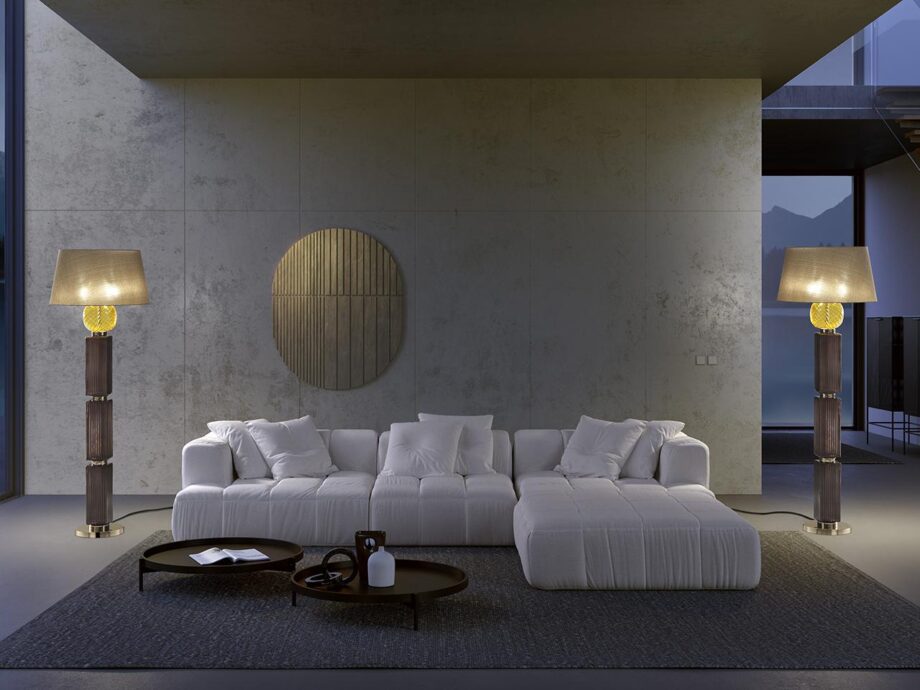 Elevate the ambiance of your living space with the stunning Matilda 8173/p3 floor lamp from the renowned Italian designer Roberta Vitadello. This exquisite modern piece showcases a metal frame in a light gold finish and a striking lampshade in luxurious brown Sorya fabric. The lamp is elegantly supported by a blown glass body, available in two captivating tones – yellow and green. The Matilda floor lamp features advanced LED technology with 3x10w bulbs, providing brilliant yet energy-efficient lighting.