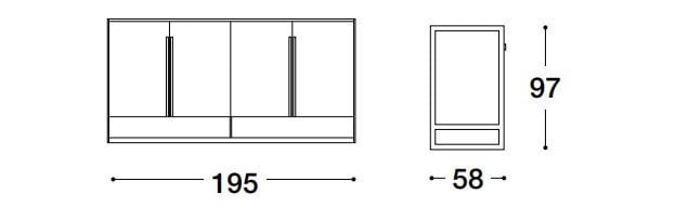 With its practical design, the Mavis sideboard comes equipped with doors and shelves, providing ample storage space for your belongings. The interior is lacquered in gloss Pietra color, creating a luxurious backdrop for your cherished items. Each internal compartment includes a ground glass shelf that can be adjusted to suit your needs.