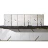 With a containing cabinet base, upper cabinet with handles, and lower drawers with a servo push-pull opening system, the Mayfair island offers ample storage space for all your kitchen essentials. The drawers are built with high-quality materials and a damped closing system, ensuring durability and ease of use.