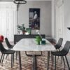 The unique shape of the table top is a result of the fusion of two geometric forms – the rectangle and the oval. This innovative design gives birth to a new and original shape that stands out. The oval shape provides a soft contrast to the sharp lines of the rest of the room, adding a playful twist to the modern style.