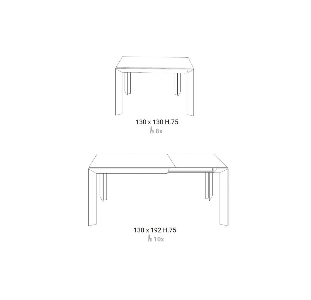 Crafted with the highest attention to detail, the Metrò Quadro table is designed to meet your specific needs. The table includes a hidden extension leaf under the top, allowing you to easily expand the surface area when needed. The pyroceram top adds a touch of elegance, while the sliding legs with wheels ensure convenience and practicality. Each table is unique, with warm veins running through the glass top, adding a touch of luxury to your living room.