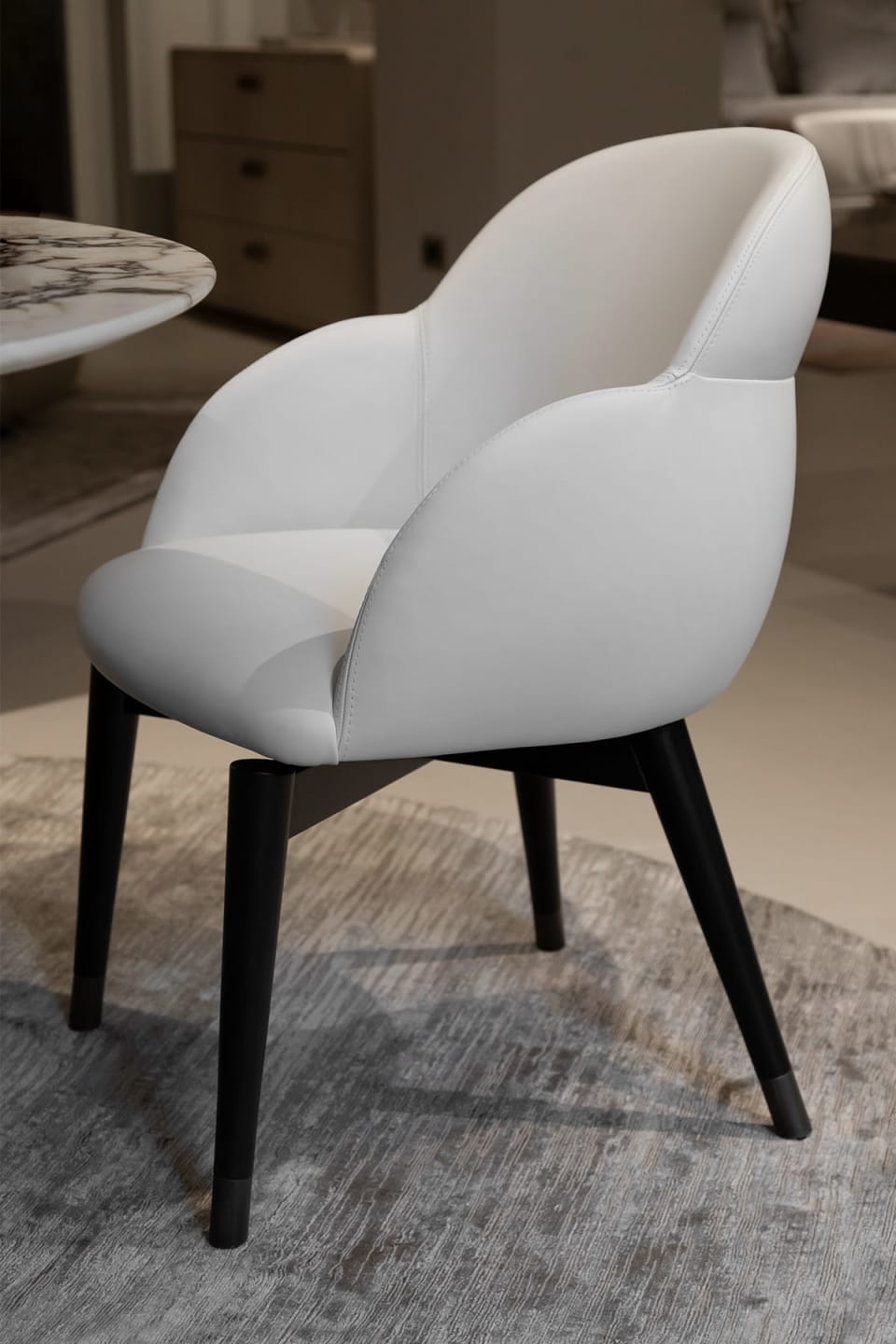 Michelle is the epitome of grace and comfort, crafted for connoisseurs of impeccable style. This chair, perfectly blending modern lines with tactile softness, is destined to become the focal point of any space. The smooth, enveloping forms of Michelle’s backrest and armrests provide exceptional ergonomics, inviting you to immerse yourself in a world of relaxation. High-quality upholstery is available in a wide range of materials, allowing the chair to adapt to any interior – from a dynamic living room to a respectable office. Sturdy solid wood legs, finished in a contrasting shade, add stability and visual lightness to Michelle, emphasizing its refined design. This is more than just a chair; it’s a piece of furniture art designed to offer aesthetic pleasure and unparalleled comfort. Let Michelle become an exquisite accent in your home or office, a symbol of your impeccable taste and pursuit of perfection. Discover more about personalization options and available upholstery choices to create the ideal solution for your space.