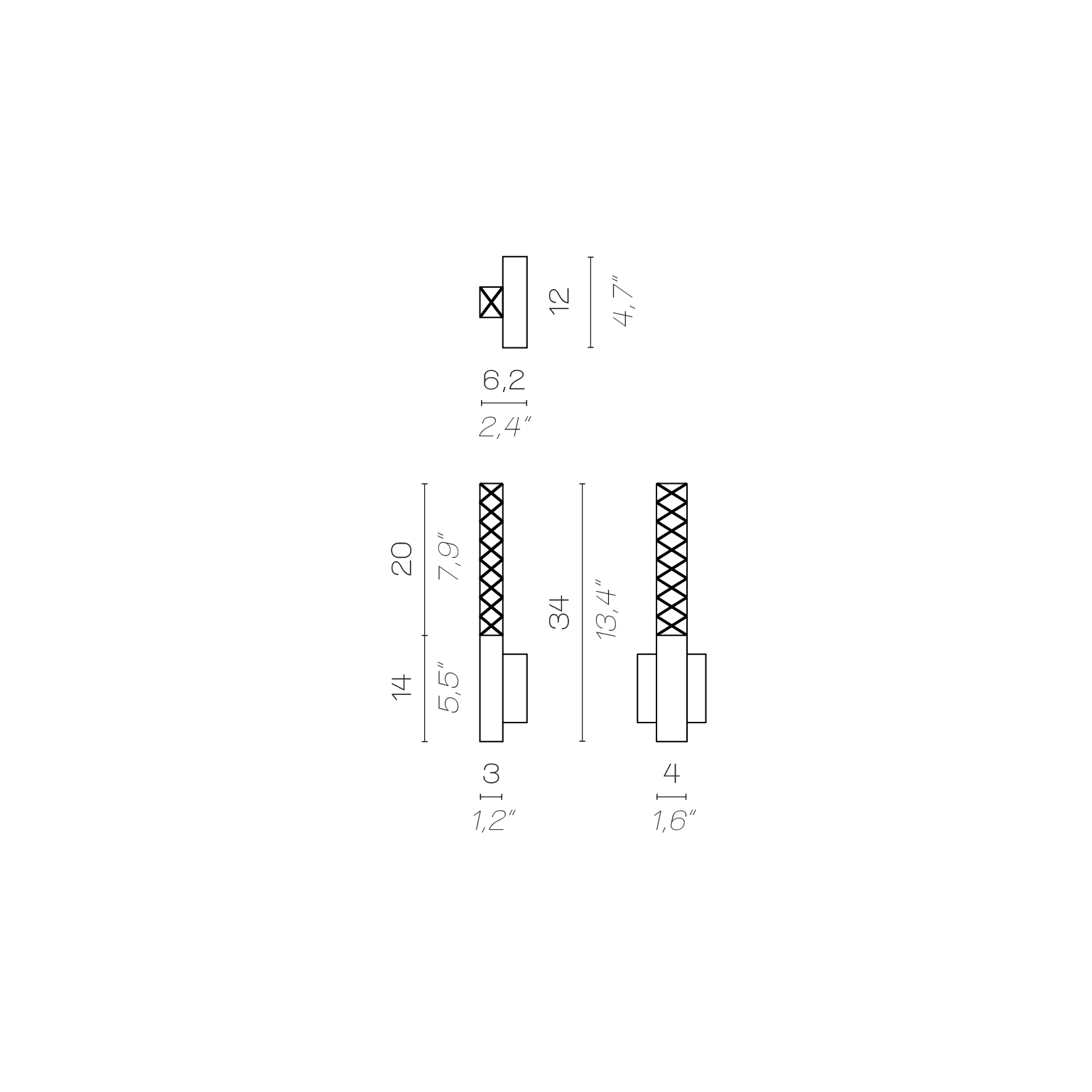 Elevate your space with the exquisite Mikado Solo LED wall lamp. This stunning piece from the Mikado collection by designer Massimiliano Raggi is a modern masterpiece that exudes elegance and sophistication. Crafted in Italy, this wall lamp features a striking combination of rectangular brass tubes and engraved crystal parallelepipeds, creating a harmonious and balanced design.
