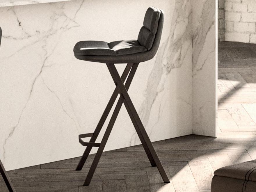 The Milo bar chair features a fixed metal base that provides stability and durability. The cushioned seat is upholstered in high-quality leather, creating a soft and inviting feel. The backrest and footrest add extra support, making Milo the perfect choice for extended periods of sitting.