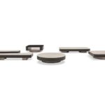 Crafted with meticulous attention to detail, the Milton Bedside Table is a contemporary reinterpretation of the 1970s design aesthetic, blending clean lines with organic curves. The table’s structure is formed from suspended geometric volumes of reduced heights, offering a visually pleasing contrast to the rounded corners that echo the sinuous curves of the Alexander ‘Drop’ seating system.