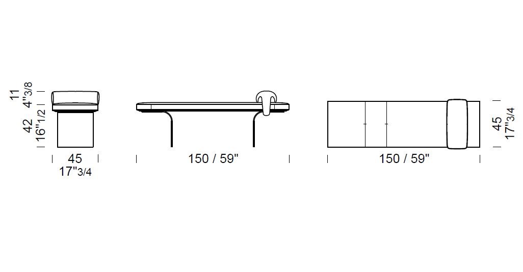The seat is upholstered in the finest leather, reflecting an appreciation for luxury materials. It offers a fixed seat in polyurethane foam, with a density of 40kg/m3, and rounded with a density of 25kg/m3. This ensures optimal comfort, guaranteeing countless hours of relaxation on the Minerva day bed.
