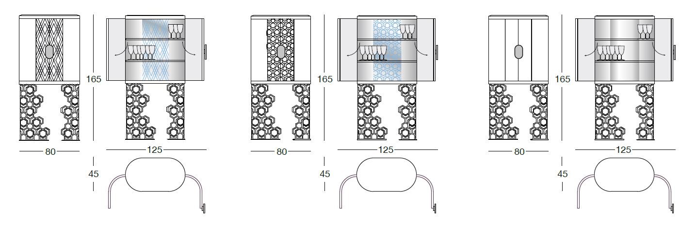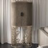 Crafted with meticulous attention to detail, the Mini Beverly features a ground metal base adorned with a captivating Sequence decoration in a choice of luxurious finishes such as bright light gold, matte champagne gold, and more. The entire cabinet is elegantly covered in sumptuous leather or cashmere from the prestigious Loro Piana Interiors catalogue, exuding opulence and sophistication.
