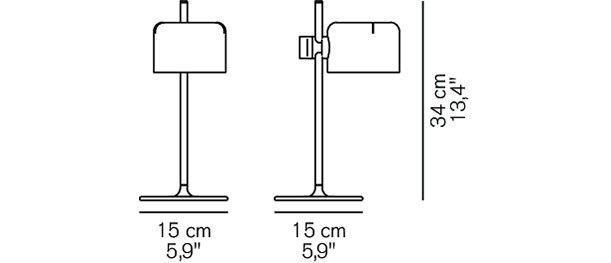 Standing at 34 cm in height, the Mini Coupé features a chrome stem and a semi-cylindrical shade that embodies the essence of Colombo’s 60s designs. With its sleek design and bold character, the Mini Coupé is a perfect blend of form and function, making a statement in any interior space.