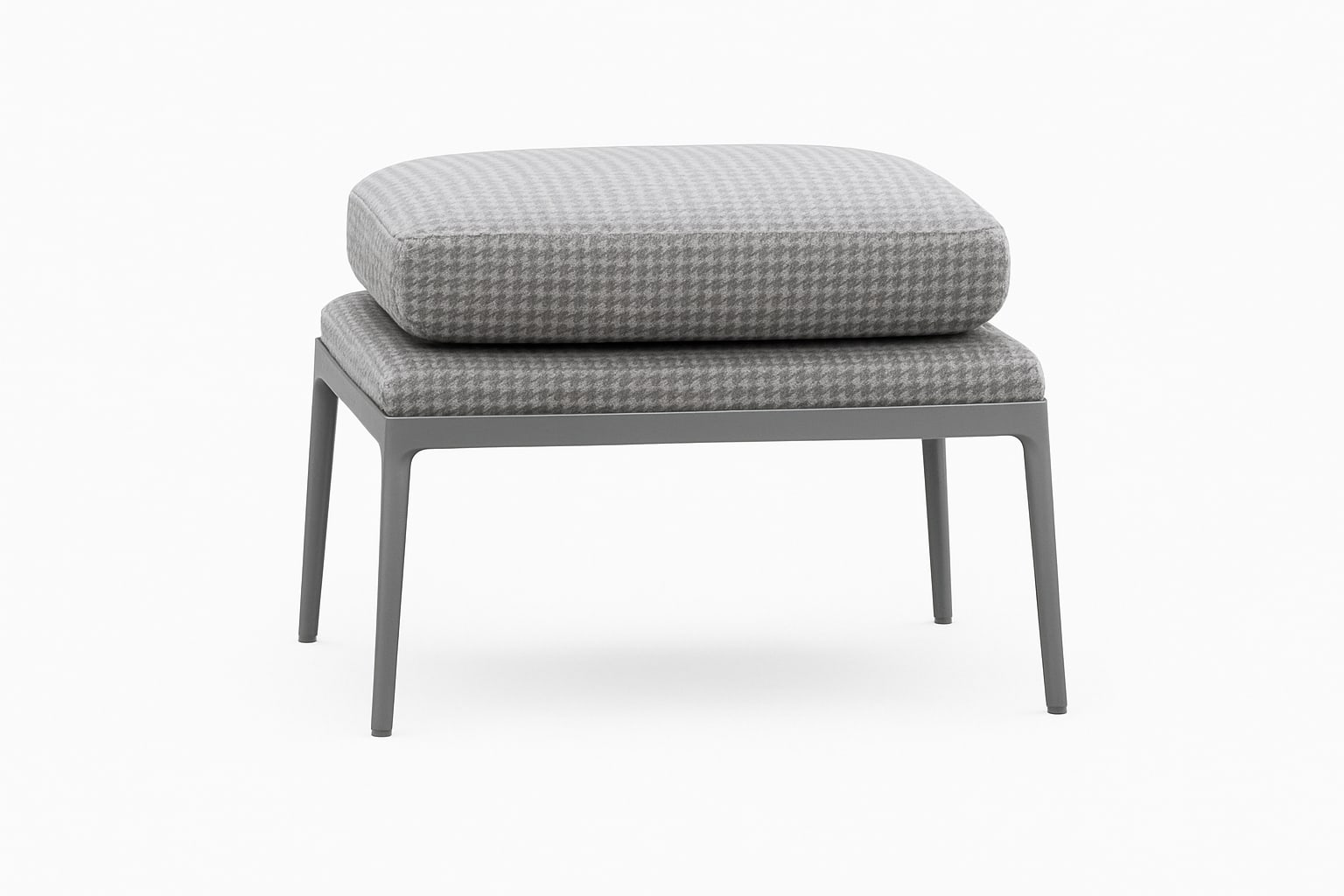 In addition to the bar chairs, the Mirto Indoor collection also includes barstools to complete your modern interior design scheme. The ottoman with a cushion is a new addition to the collection, offering a stylish seating option that matches the existing finishes in the series.
