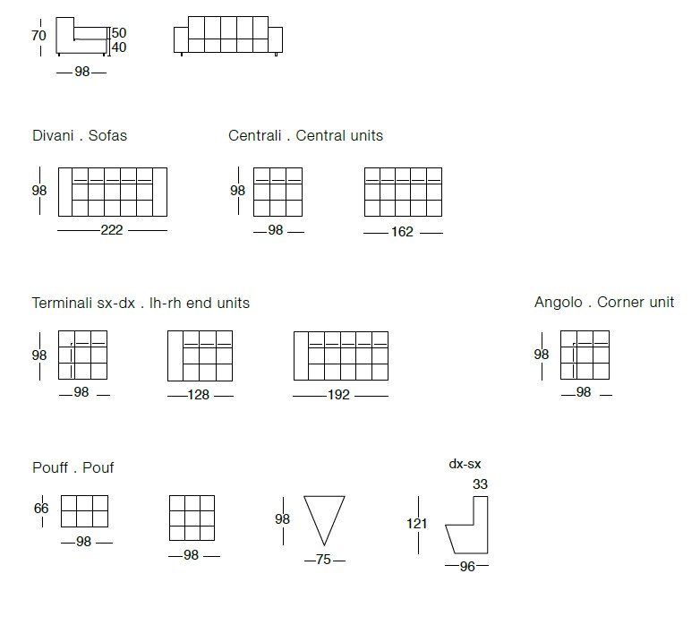 The comfort of the Modulor is unmatched, thanks to its unique design structure. The sofa’s steel structure is padded with various densities of polyurethane foam, providing a perfect balance of comfort and support. The seat and back cushions are integrated into the structure, made of differentiated densities of moulded polyurethane foam and heat-bonded fibre, ensuring long-lasting comfort.