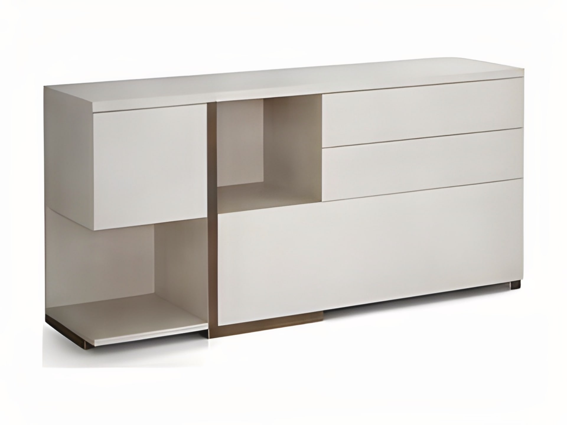 Mondrian masterfully integrates open shelves and closed drawers, offering an elegant solution for storing and displaying your cherished items. Its concise forms and clean lines will perfectly complement a living room, bedroom, or hallway interior, adding sophistication and order to the space. Crafted from high-quality materials with an impeccable finish, this chest of drawers underscores the owner’s status and taste.
