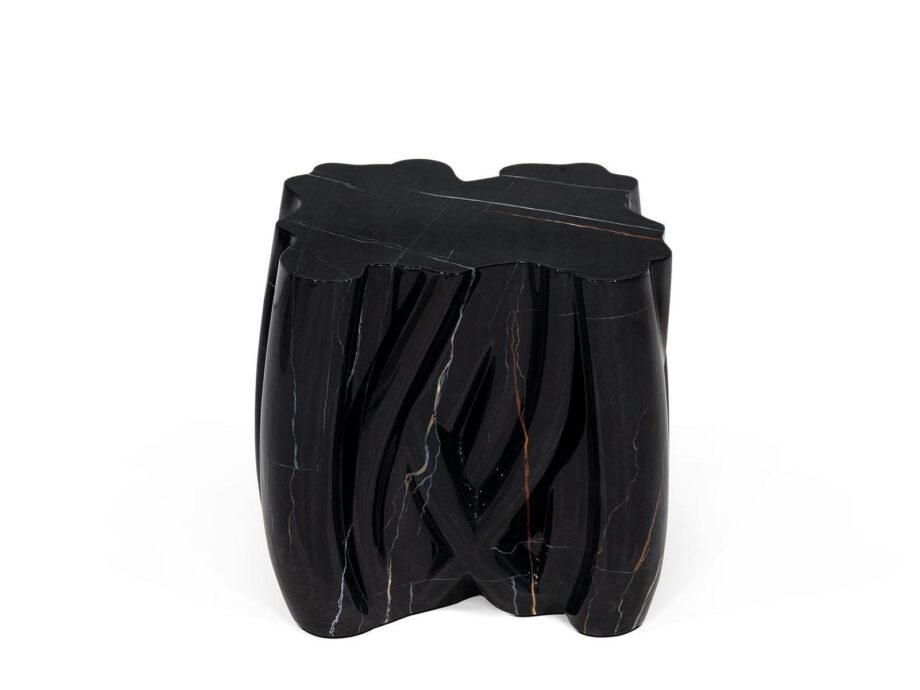 The Monochrome Faux-marble Coffee Table is not just a piece of furniture, it’s an art. The table is crafted using advanced arts and techniques including sanding, hand-painting, and varnishing. The materials and finishes used are molded glass-fibre filled with expandable polyurethane and hand-painted faux-marble, resulting in a piece that is truly one-of-a-kind.