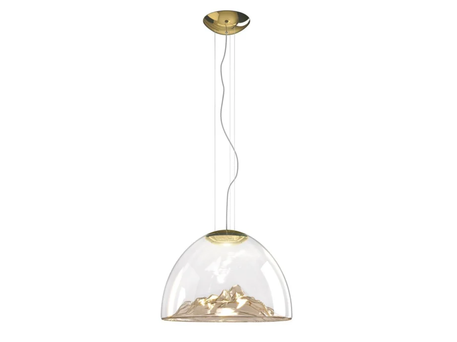 Crafted from high-quality blown glass, the Mountain View pendant lamp features a transparent design that allows light to shine through beautifully. The option to add a decorative mountain motif adds a unique touch to this already exquisite piece, making it a statement in any room.