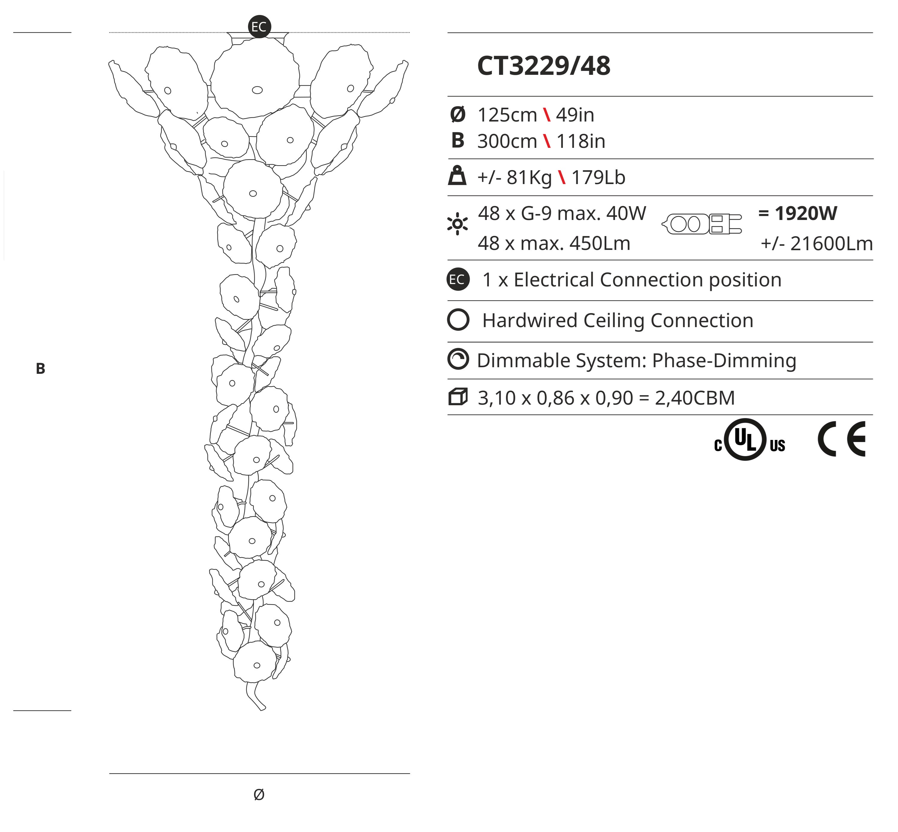 Ideal for delicate interiors with a vertical architecture, the Nenufar Ct3229/48 is perfect for those who appreciate the finer things in life. Whether in a residential or commercial setting, this stunning piece exudes an air of sophistication and elegance.