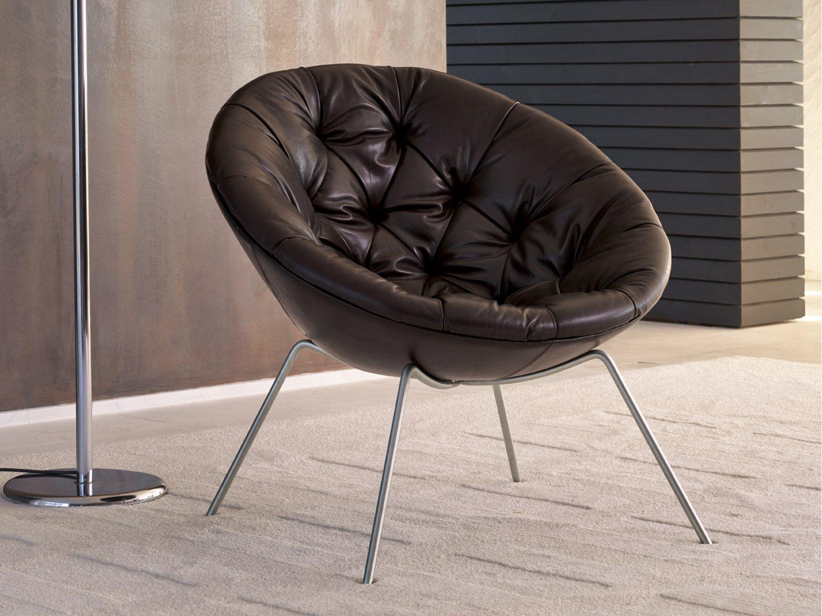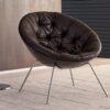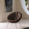 Designed to evoke the feeling of a cozy family nest, this armchair features a unique quilted ‘capitonnè’ finish on the inside, creating a sense of warmth and comfort. The smooth exterior of the chair is complemented by a sleek satin steel tubular structure, adding a touch of contemporary flair to its overall design.