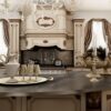 The New York kitchen is finished in Vintage Vaniglia, a color that beautifully complements the antique silver leaf with bolus details. This harmonious blend of colors and materials gives the kitchen a charming, old-world feel, while still maintaining a contemporary edge.