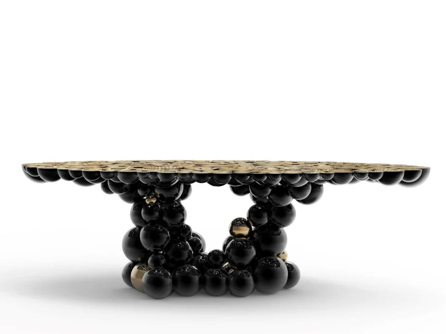 Crafted with meticulous attention to detail, Newton is not just a table, but a testament to exceptional craftsmanship. Its oval shape lends a touch of elegance to its modern style, making it an exceptional centerpiece for your living room. The high-gloss black lacquer finish gives it a sleek, sophisticated appeal, while the gold-plated spheres add a touch of opulence.