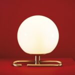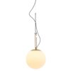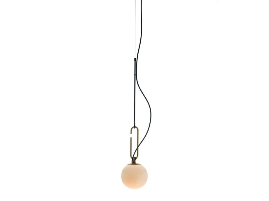 The Nh pendant lamps feature LED light bulbs for energy-efficient illumination, casting a direct light that enhances the ambiance of any space. The innovative design allows for versatile positioning, with the white blown glass sphere sliding along the brushed brass ring to create different lighting effects.
