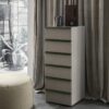 Discover stylish storage solutions with our Oikos collection – an impeccably designed series of chests of drawers. Each piece in the range embodies the modern aesthetic, combining the simplicity of clean, linear shapes with the elegance of sumptuous fabric coverings. Crafted from the highest quality wood, these pieces are not just furniture; they are timeless additions, designed to elevate any interior space.