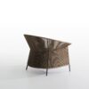 Crafted with a wrapping backrest made of rounded metal and handwoven in Fly ribbon, the Ola armchair exudes elegance and sophistication. The legs are constructed with lacquered treated steel AISI 316 pipe, ensuring durability and stability.