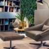 The Olivia armchair is available in a range of upholstery options including eco-leather, fabric, nabuk, or leather, allowing you to customize it to suit your personal taste. Its 4-spoke metal base with swivel feature offers both functionality and style, making it a versatile addition to any space. With armrests and a footstool included, the Olivia armchair provides the perfect combination of comfort and elegance.