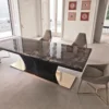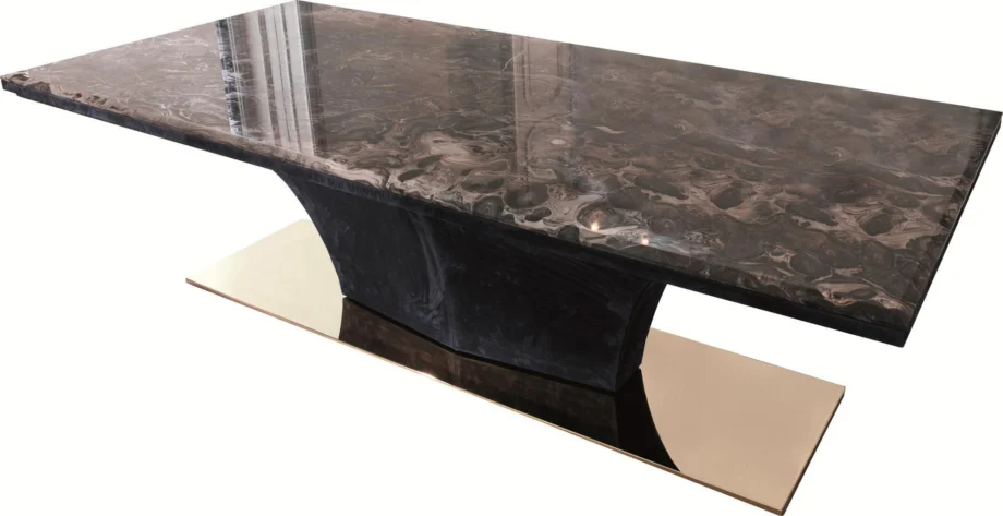 Crafted with precision and attention to detail, the Omotesando table features a stunning metal base available in a range of finishes, including bright light gold, matte champagne gold, and more. The table top is equally impressive, with options such as painted black crystal, bronze or smoky mirror, and luxurious marble in various colors.