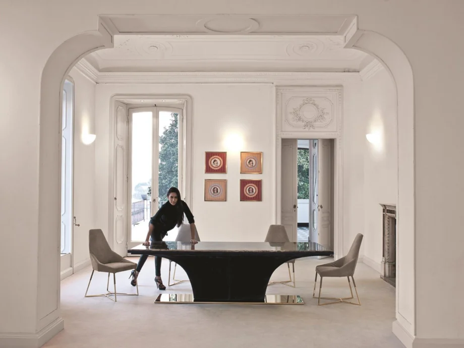 Elevate your living space with the exquisite Omotesando table from Longhi’s Loveluxe collection, designed by the renowned Silvia Musetti. This luxurious piece of furniture is a true masterpiece that combines art deco elegance with modern sophistication, making it a must-have for those who appreciate beautiful design.