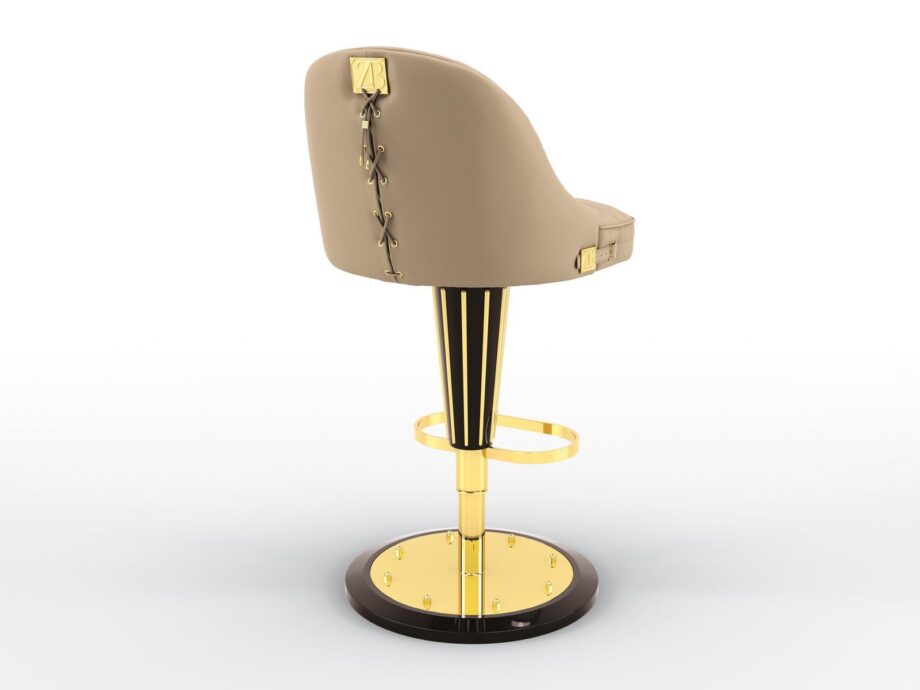 With its padded back and footrest, the Ophelia bar chair offers the perfect combination of support and comfort. The quilted inner body and corset decoration in leather add a touch of stylish flair to this already stunning piece. Available in Leather Sand, Chocolate, and Gold finishes, the Ophelia bar chair is sure to complement any interior design scheme.