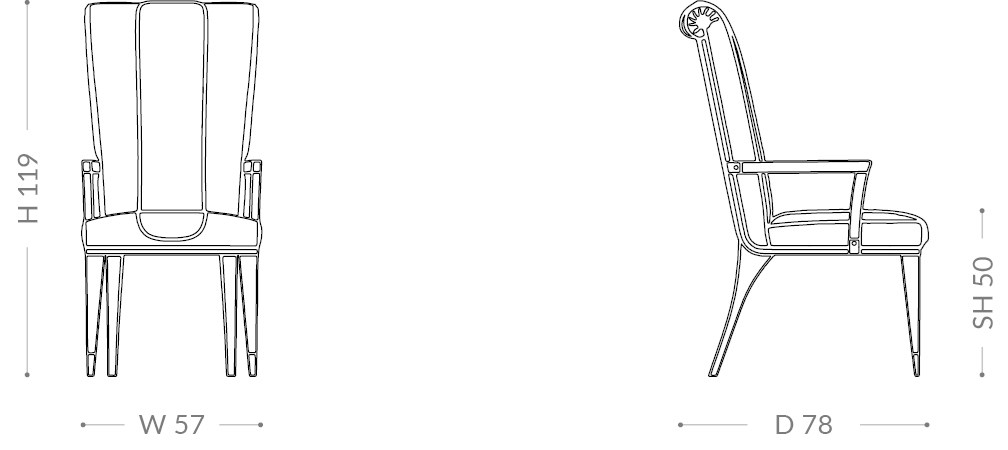 Every detail of the Opium dining armchair is designed with careful precision and a meticulous eye for grace and elegance. It represents a perfect blend of sophistication and functionality, making it an ideal choice for individuals seeking to introduce a piece of modern luxury into their homes.