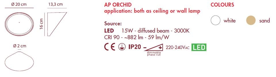 Whether you’re looking to illuminate a hallway, living room, or bedroom, Orchid’s minimalist design and versatile color make it a versatile lighting solution for any modern interior. Pair it with other pieces from the Orchid collection such as ceiling lamps, suspended lamps, and floor lamps to create a cohesive and stylish lighting scheme throughout your home.